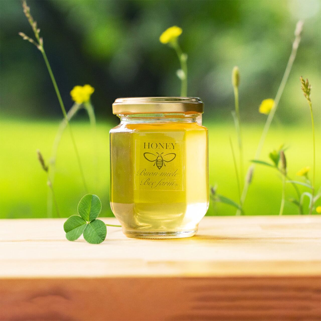 ブォンミエーレ初のさくら蜜です。透き通る薄い金色のハチミツです。