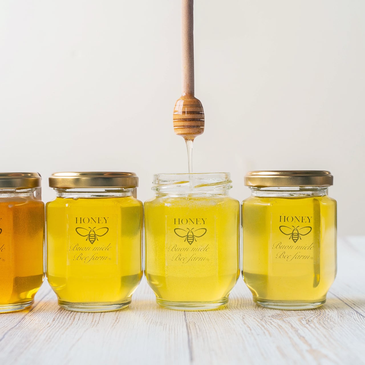 ブォンミエーレでは水分を飛ばすための加熱や加工を一切しないため、ミツバチが自然にはちみつを完熟させるのを待ちます。