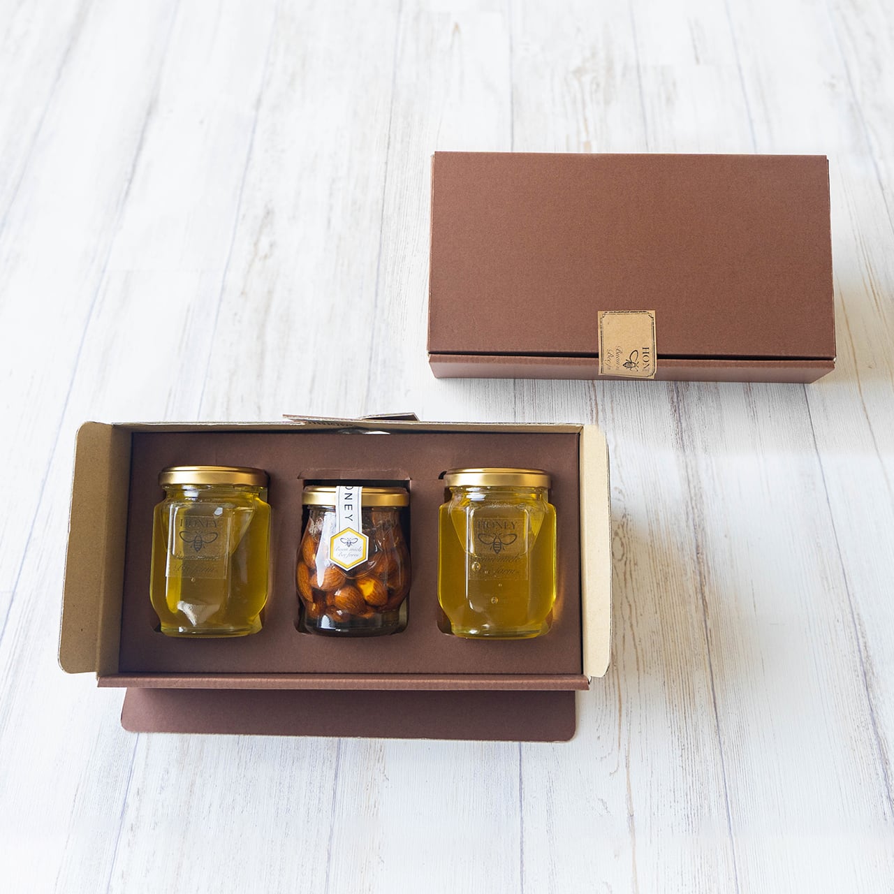Gift set of 2 jars of Miyazaki honey and 1 jar of almond soaked in Miyazaki honey.