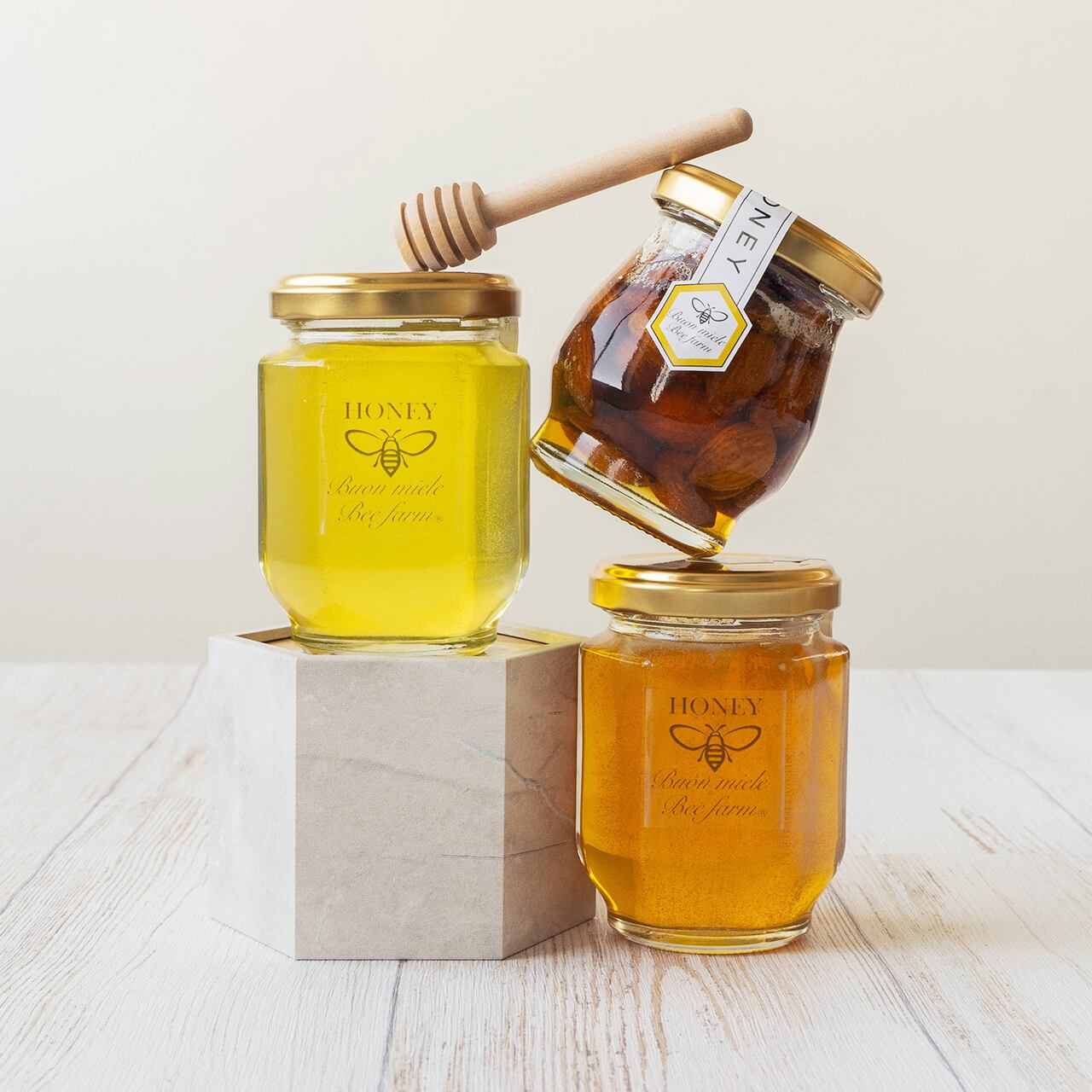 Gift set of 2 jars of Miyazaki honey and 1 jar of almond soaked in Miyazaki honey.
